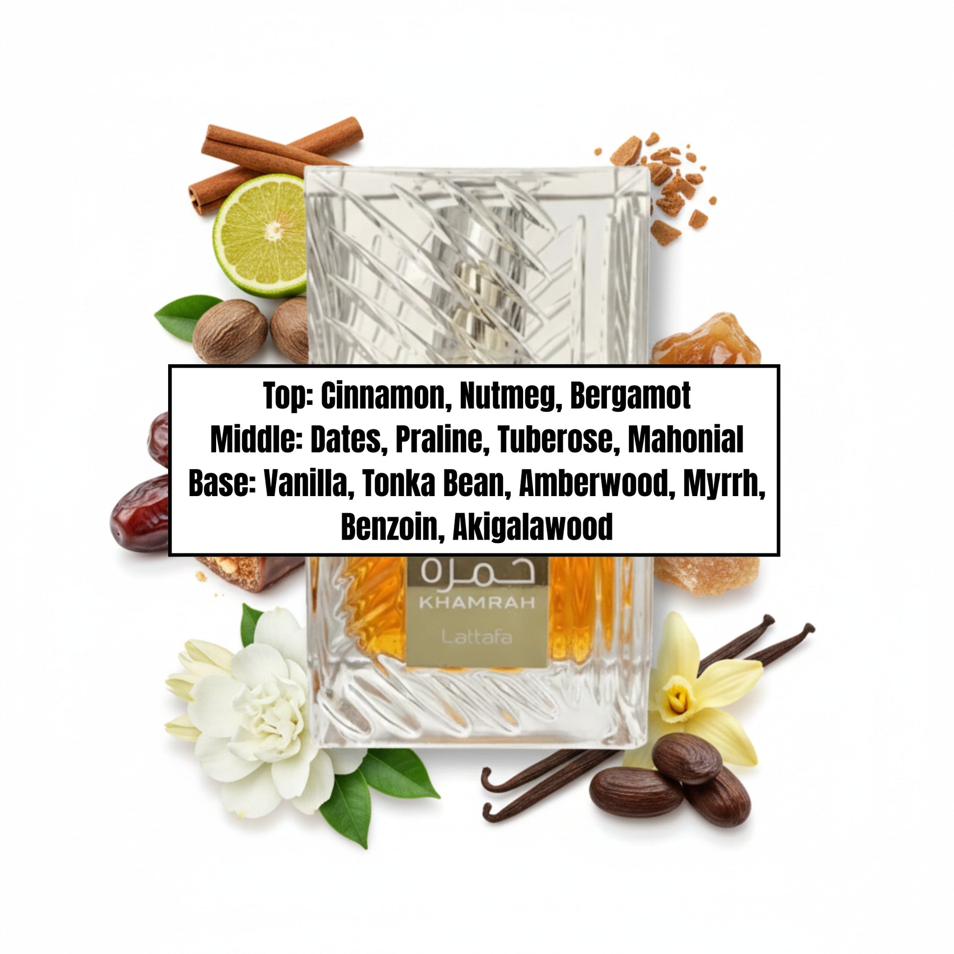Khamrah is the OG royalty of the Arabian perfume world—the viral masterpiece that basically launched a thousand gourmand obsessions. It opens with a warm, intoxicating kick of Cinnamon and Nutmeg before melting into a ridiculously rich heart of Dates and Praline. It dries down to a heavy, addictive base of Vanilla, Tonka Bean, and Amberwood, leaving you smelling like an incredibly expensive, boozy dessert that effortlessly commands the entire room.